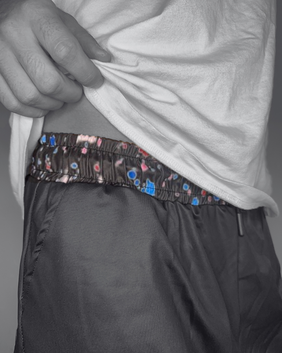 Clean on the surface, detailed where it matters. CHROMA TIDE features a smooth black shell with a hidden paint-splatter waistband that shows only when you move. Built with a soft liner, four-way stretch, and a minimal fit made for volleyball performance and everyday wear. Limited to fifteen pairs.